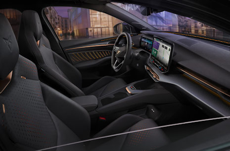Kabina CUPRY Raval została zaprojektowana z naciskiem na ergonomię i intuicyjną obsługę. Podwyższona pozycja za kierownicą oraz sportowe ustawienie fotela wpływają na bardziej bezpośrednie odczucia z jazdy.