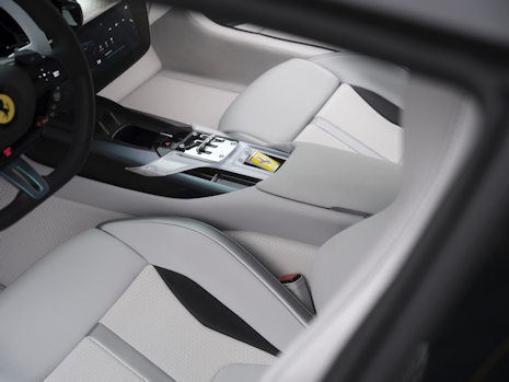 Twórczość Daehye Jeong, laureatki Loewe Foundation Craft Prize 2022, znalazła szerokie zastosowanie we wnętrzu pojazdu. Charakterystyczny wzór artystki wykorzystano w tapicerce foteli, podłodze i miękkich elementach kabiny w postaci nowego, trójwymiarowego materiału, zastosowanego w Ferrari po raz pierwszy. Wzór pojawia się także jako sitodruk na szklanym dachu, tworząc efekt gry światła i cienia. Najbardziej unikatowym elementem jest ręcznie tkany panel z końskiego włosia mongolskiego umieszczony na desce rozdzielczej – pełnoprawne dzieło sztuki zintegrowane z wnętrzem samochodu.