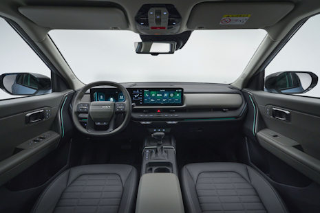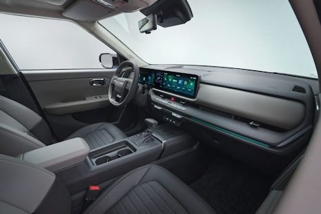 Wnętrze zaprojektowano w oparciu o prostą, horyzontalną architekturę, która zwiększa poczucie przestrzeni. Centralnym elementem jest panoramiczny zestaw ekranów, obejmujący cyfrowe zegary i system multimedialny, uzupełniony oddzielnym panelem klimatyzacji.