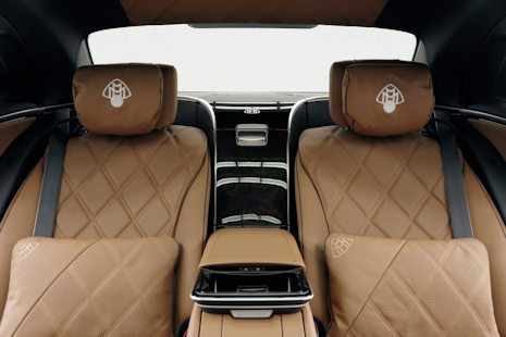 Wewnątrz skórzaną tapicerkę nappa w kolorze brązu siodła MANUFAKTUR zestawiono z elementami z połyskującego drewna orzechowego, włącznie z ręcznie wykończoną kierownicą, która wymaga wielu godzin precyzyjnej pracy. Aurę autentycznej unikalności podkreślają podsufitka w kolorze brązu siodła z diamentowym pikowaniem, haft stanowiący sygnaturę specjalnej edycji oraz numer egzemplarza na konsoli środkowej. Tylną konsolę środkową zdobi złota inkrustacja. Emblemat Maybacha z pamiątkowym medalem i liczbą 12 jest otoczony dwunastoma złotymi okręgami, które subtelnie nawiązują do wzoru marki Maybach. Stworzenie tej misternej inkrustacji wymaga aż siedmiu dni roboczych skrupulatnego rzemiosła.