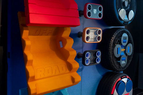 Oprócz samego samochodu koncepcyjnego przestrzeń zawiera również wymienne elementy ekspozycyjne, takie jak fotele, koła czy elementy sterowania kierownicą, które pozwalają odwiedzającym bliżej poznać rozwiązania zastosowane w projekcie.
