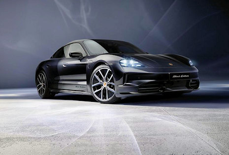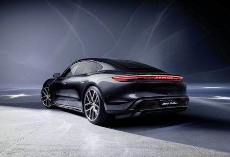 Czarne akcenty na zewnątrz i wewnątrz podkreślają sportowy, elegancki wygląd modeli Black Edition. W modelu Taycan pakiet Sport Design, listwy bocznych okien i oznaczenie modelu z tyłu są wykończone w kolorze czarnym z wysokim połyskiem. Lusterka zewnętrzne w kolorze czarnym z wysokim połyskiem w połączeniu z innymi lakierami zewnętrznymi są dostępne wyłącznie w wersji Black Edition. Standardowo montowana jest również tylna listwa świetlna z podświetlanym czarnym logo Porsche. W pakiecie znajduje się również pakiet czarnych akcentów we wnętrzu, pakiet schowków oraz czarne, szczotkowane, podświetlane listwy progowe z aluminium.