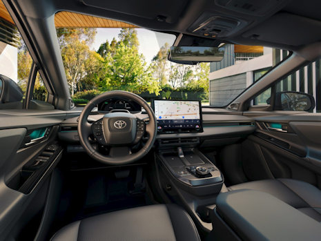 Zmodernizowana Toyota bZ4X otrzymała przeprojektowany przedni pas oraz udoskonalone wnętrze, w którym standardem jest 14-calowy ekran multimedialny oraz nowa konsola środkowa z dwiema ładowarkami indukcyjnymi.